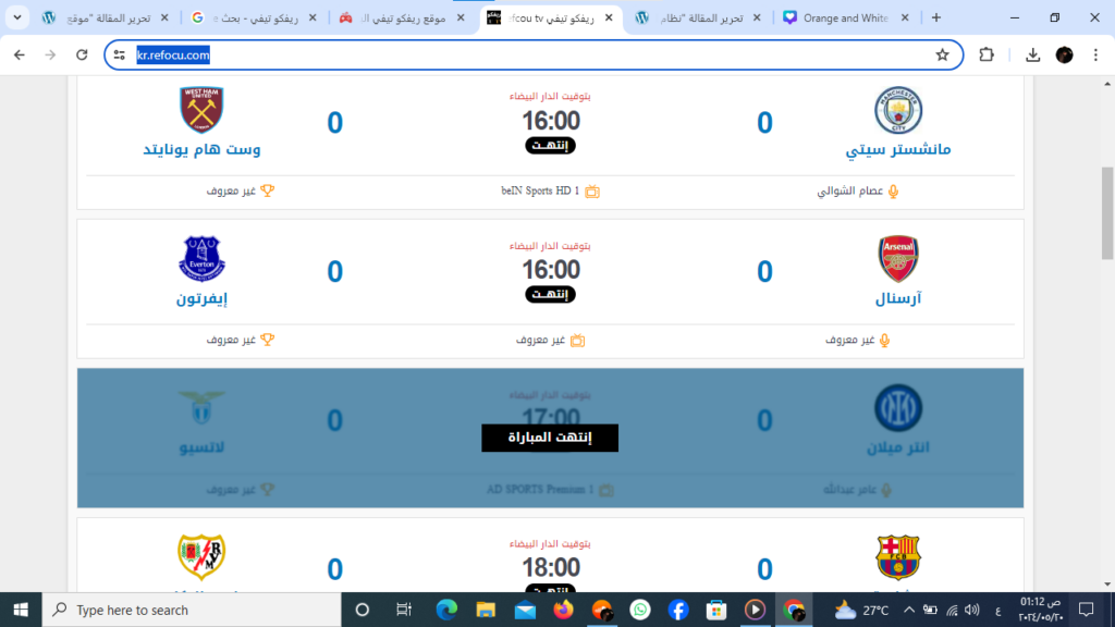 موقع ريفكو تيفي refcou tv لمشاهدة المباريات اليومية مجانا 2025