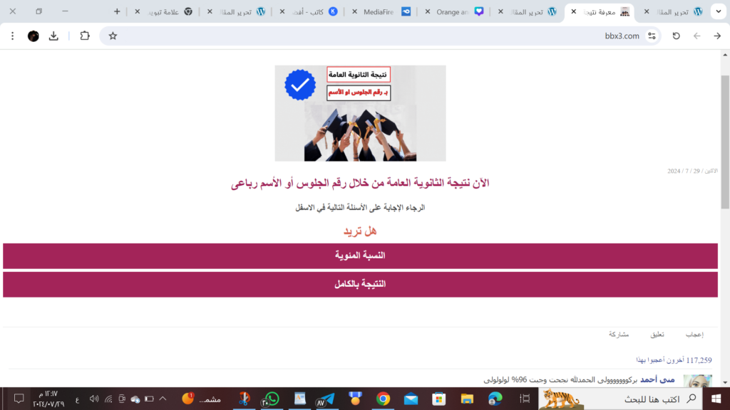 صور من داخل الموقع bbx3 لمرفة نتيجة الثانوية العامة 2024